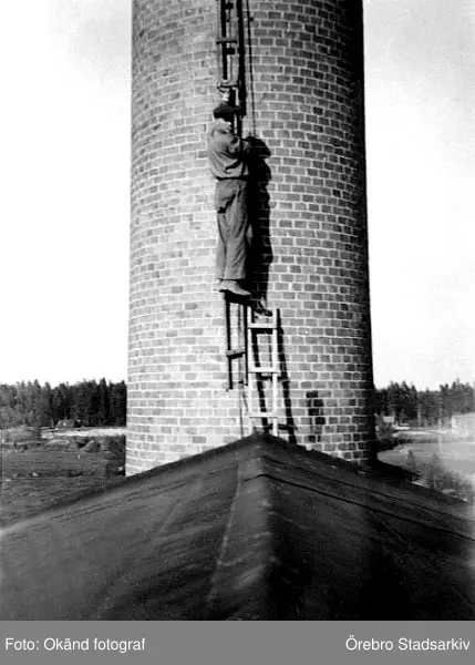 Arbete med skorsten vid Hidingsta tegelbruk, 1930-tal