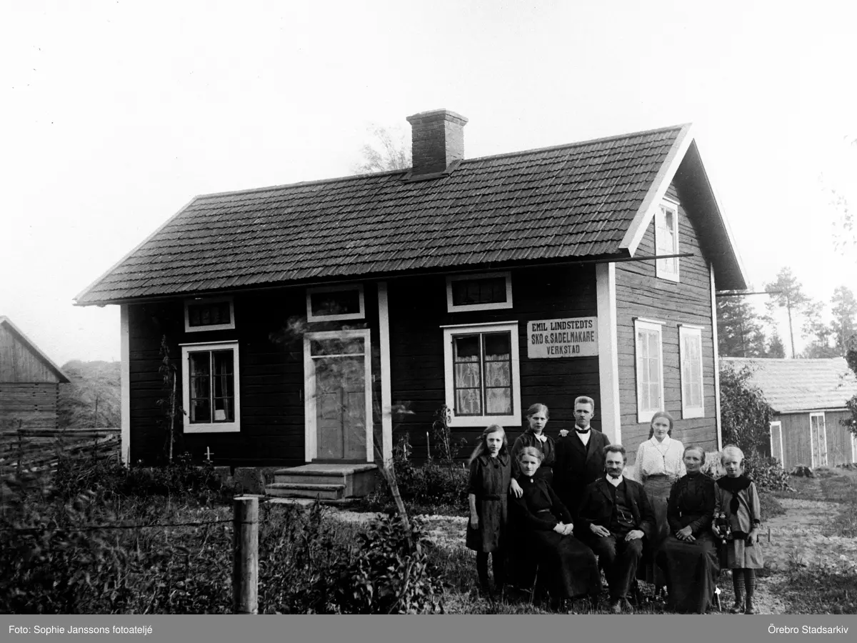 Familjen Lindstedt framför sitt hus, 1916