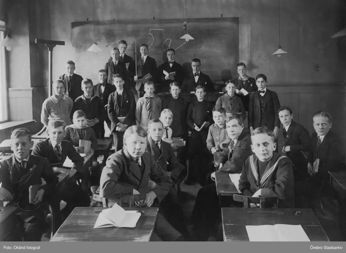 Klass 5 A på Karolinska Läroverket, Olaigatan , Skolgatan, 1918 ca