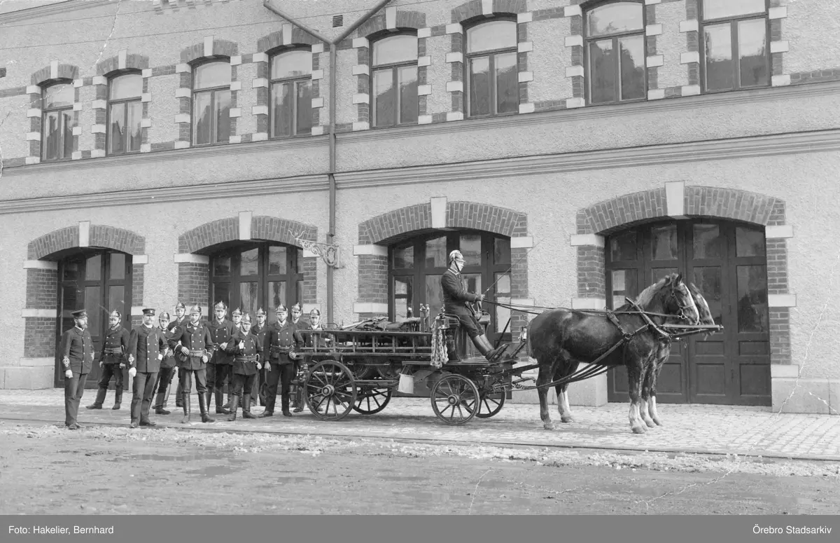 Brandmän med hästdragen brandvagn, 1903