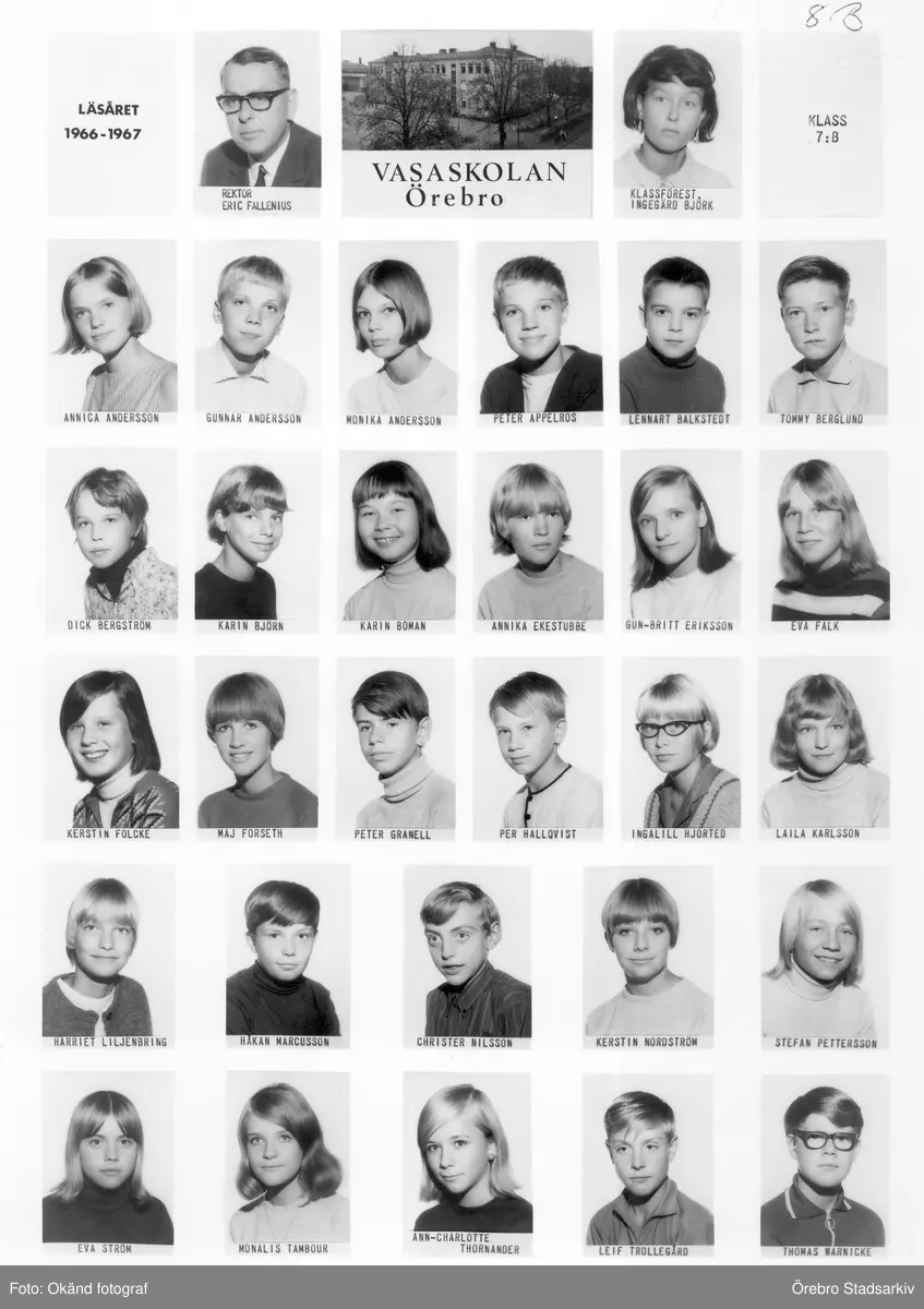 Klass 8 B Vasaskolan, 1966-1967