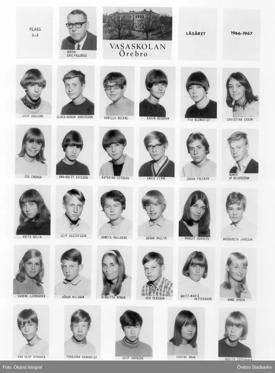 Klass 9 A Vasaskolan, 1966-1967