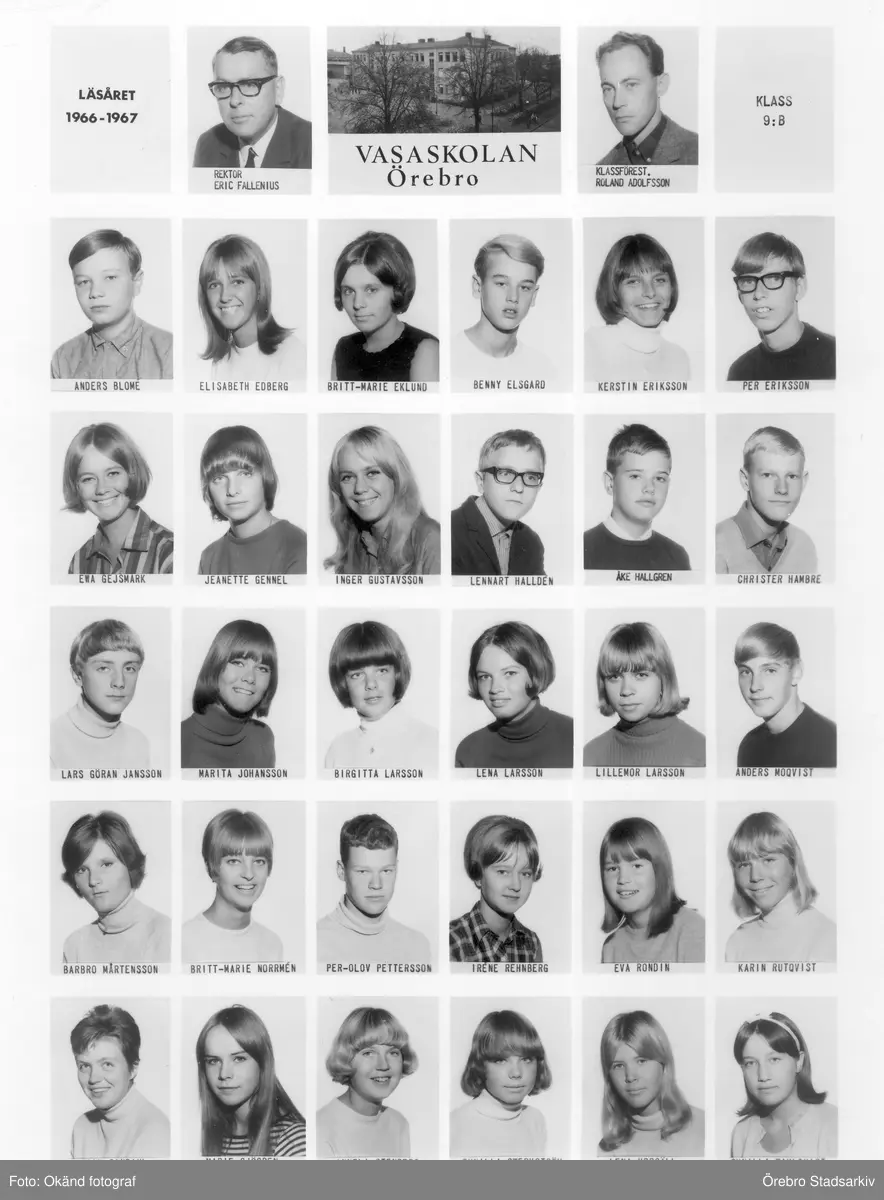 Klass 9 B Vasaskolan, 1966-1967