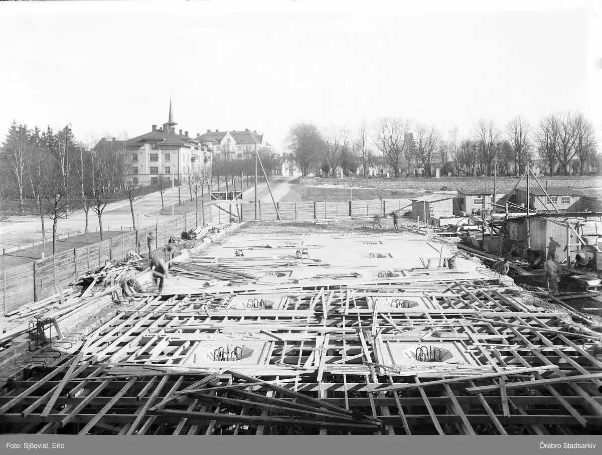 Byggarbete vid Oscaria skofabrik, 1944