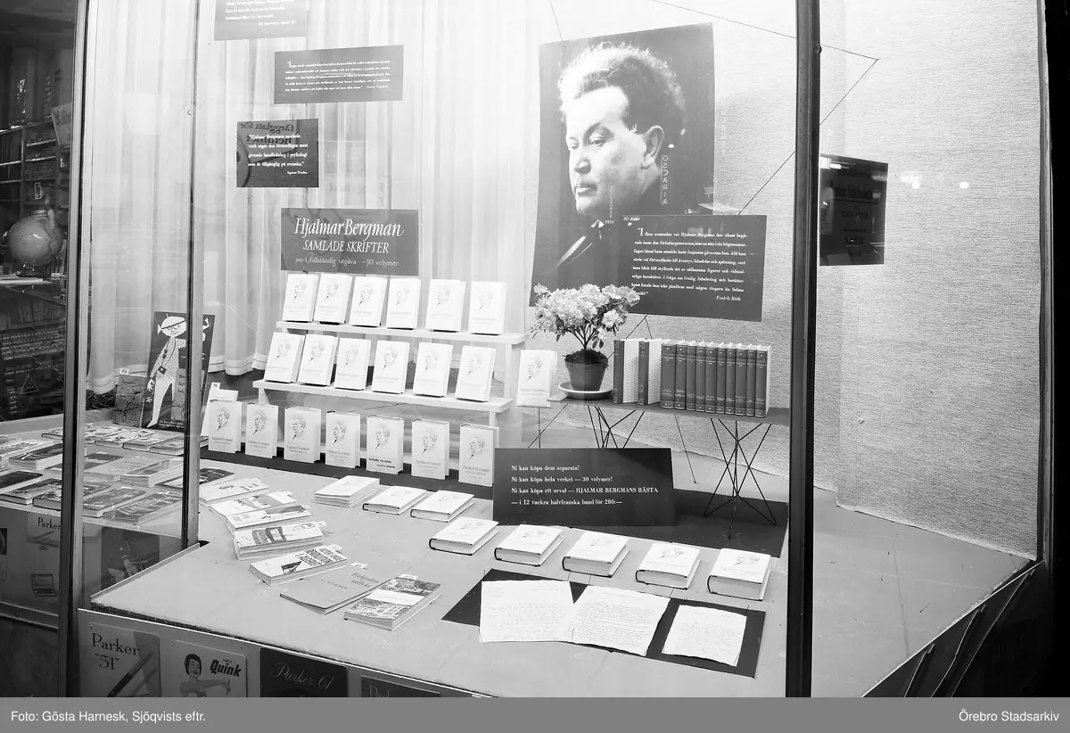 Skyltfönster till Rohloffs bokhandel, april 1958