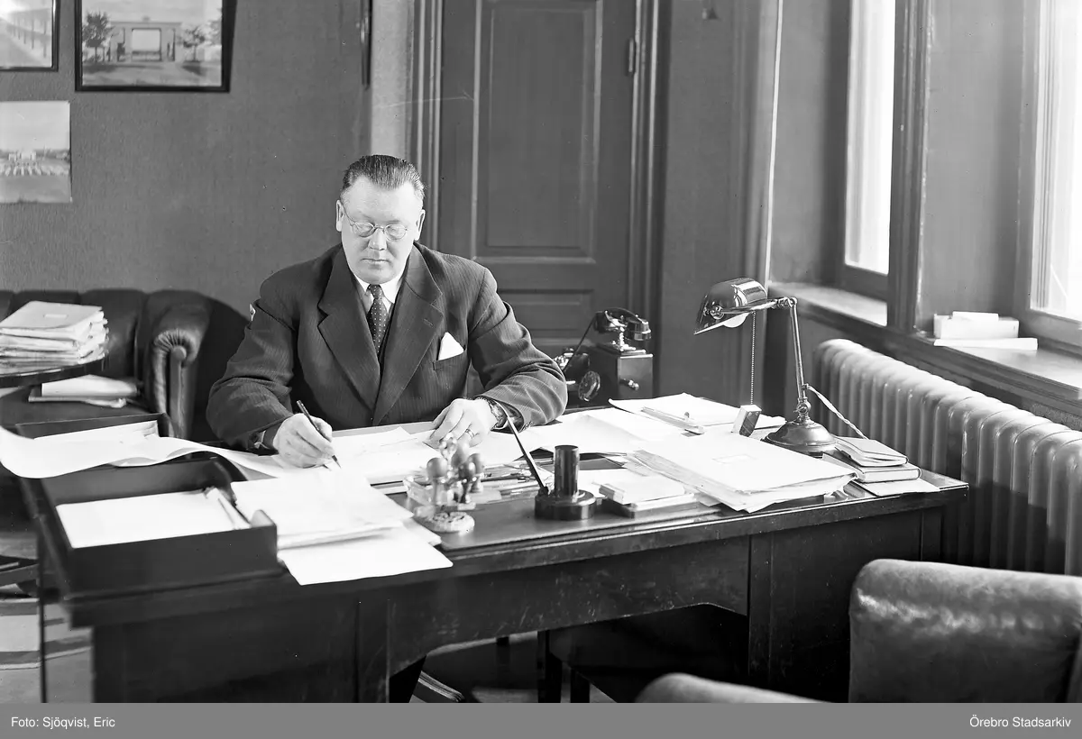 Man vid skrivbord på Armerad betong, 1940-tal