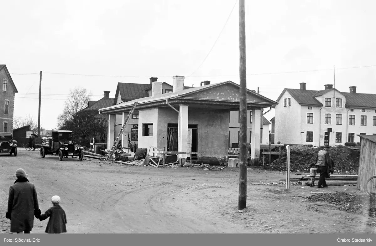 Byggnation av bensinmack vid Bromsplan, 1937 ca