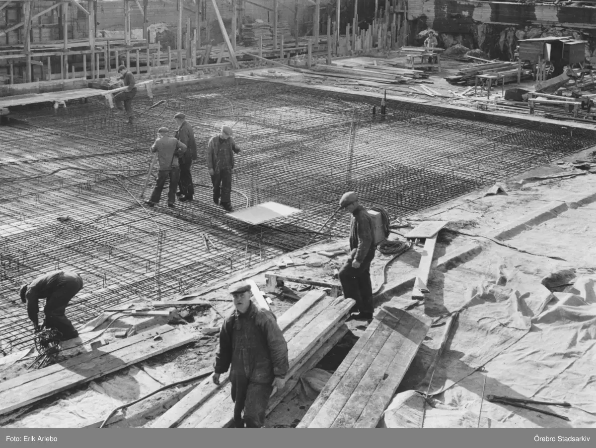 Armeringsjärn för gjutning vid polishuset läggs, 1956-03-13