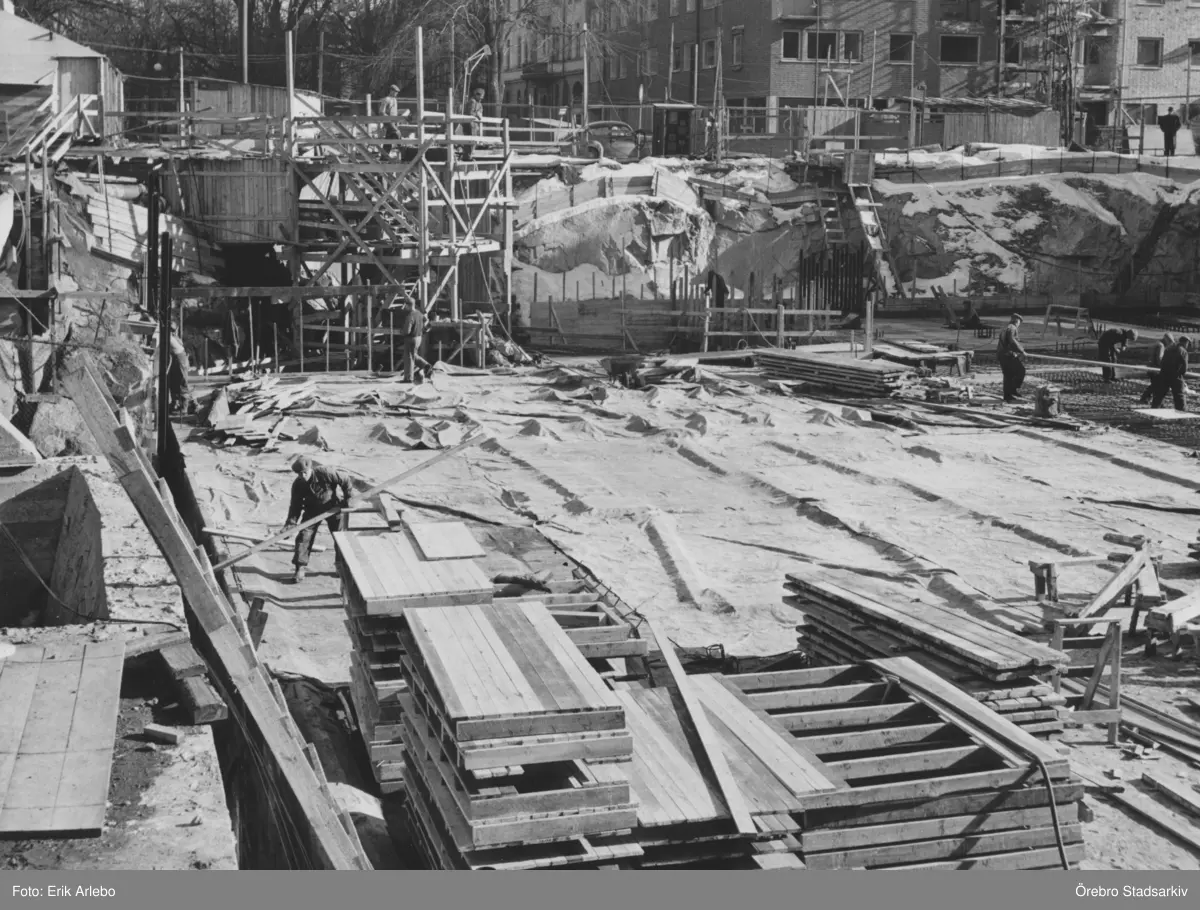 Arbete i olika nivåer på Polishubygget, 1956-03-13