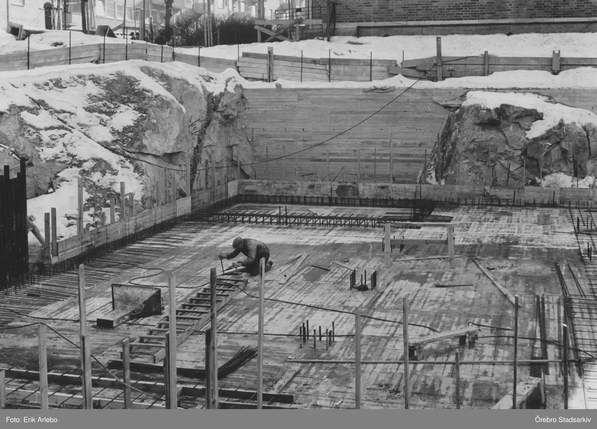 Byggarbetare vid polishuset, 1956-03-13