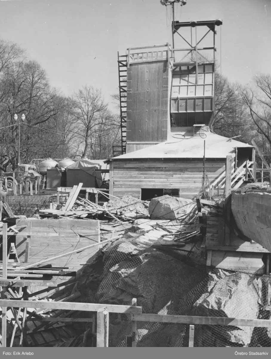 Cementbil bakom förråd vid polishuset, 1956-05-04