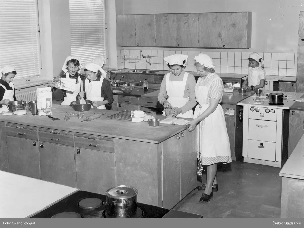 Elever har hemkunskap på Vasaskolan, 1950-tal