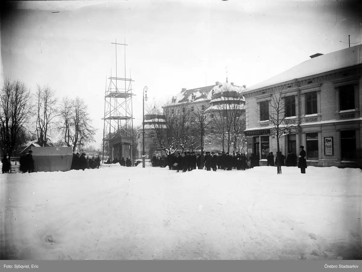 Uppförande av fundament till Karl XIV Johan-statyn, 1919
