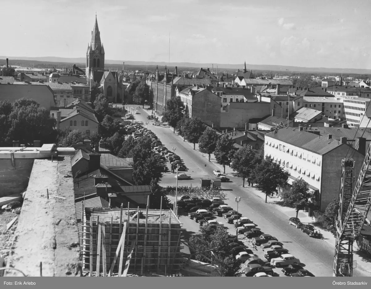 Utsikt mot väster från polishusets tak, 1957-08-19