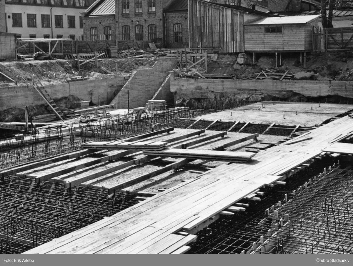 Delvis fyllt med cement vid polishusbygget, 1956-05-04
