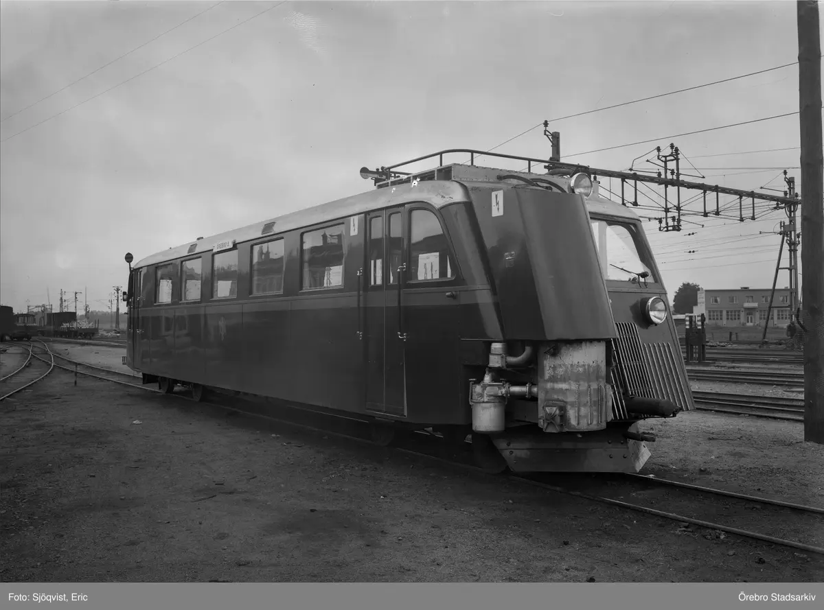 N. J. Ö. Smalspårsrälsbuss nr 257 eller 258 med gasgenerator, september 1941