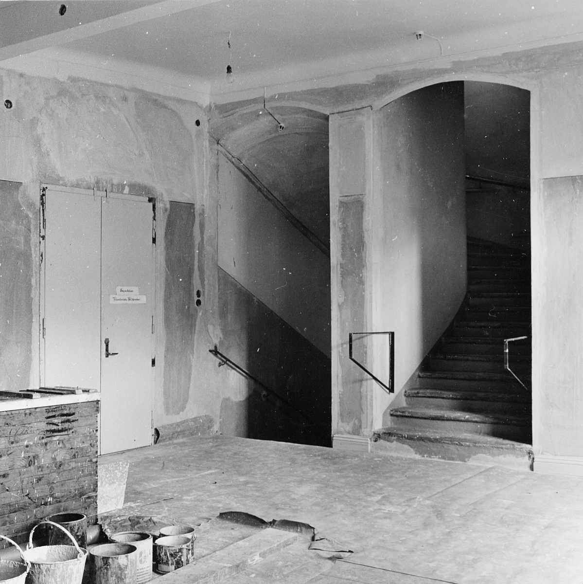 Trapphallen på 2 trappor. Till vänster dörr till expeditionen.
