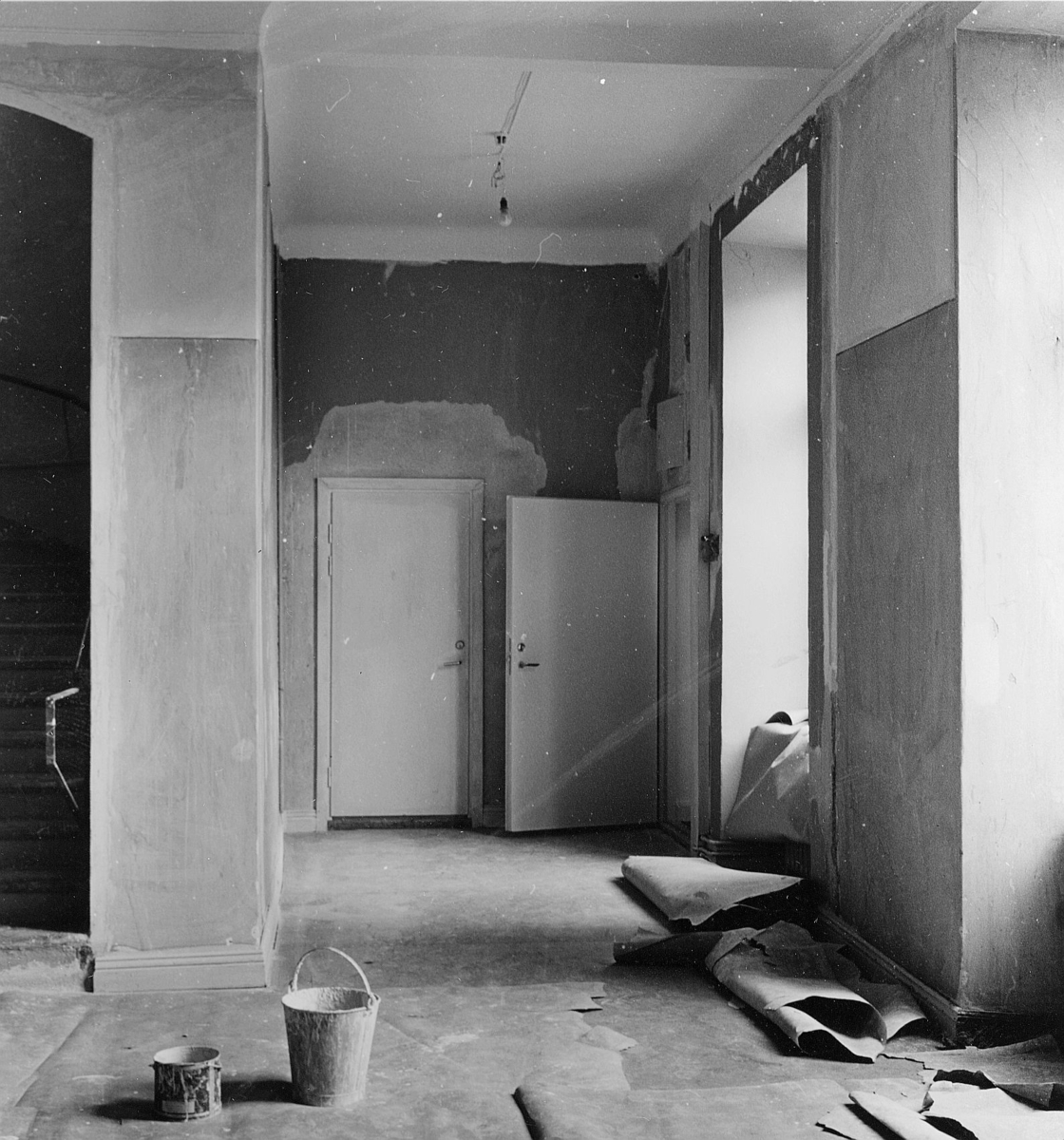 Trapphallen på 2 trappor. Dörren till höger till blivande