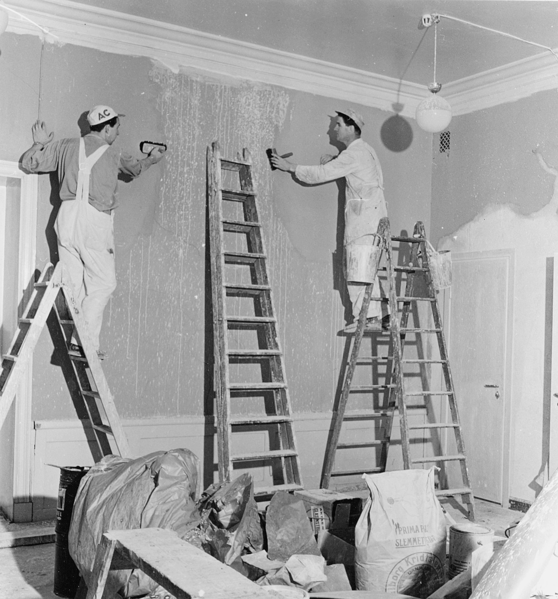 Våningen 2 trappor. Målningsarbeten i arkivrummet ("gröna rummet").