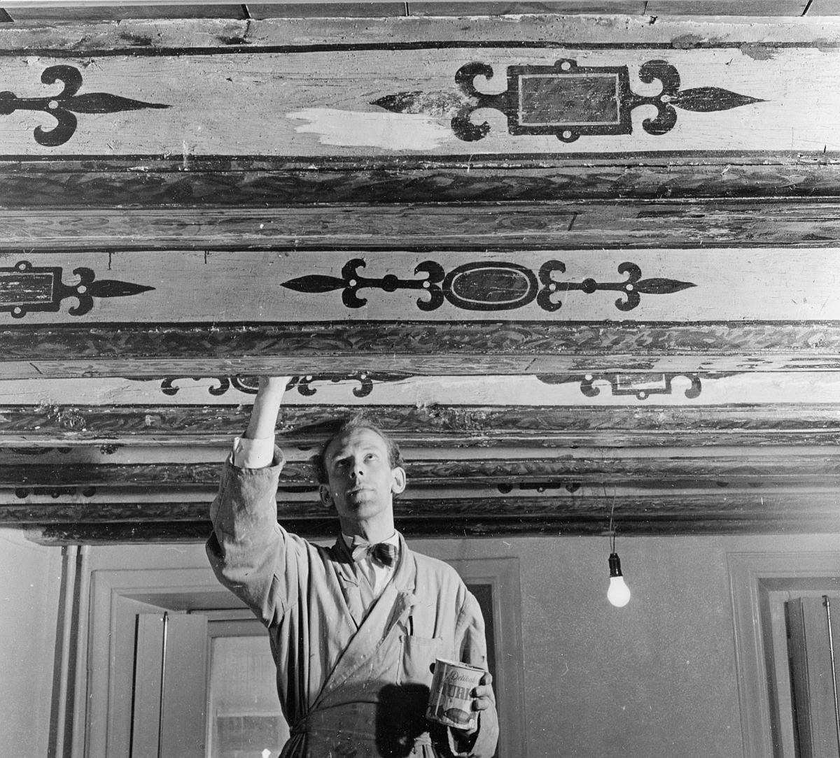 hos konservator Sven Dalén. Bjälkarna låg gömda under golvet till rum