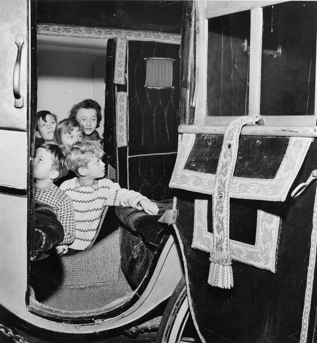 Skolungdom på besök under sport- lovsveckan. Hästdiligensen från