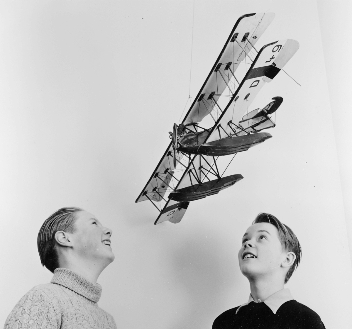Modell av flygplanet "Friedrichs- haven" i luftpostrummet på nedre