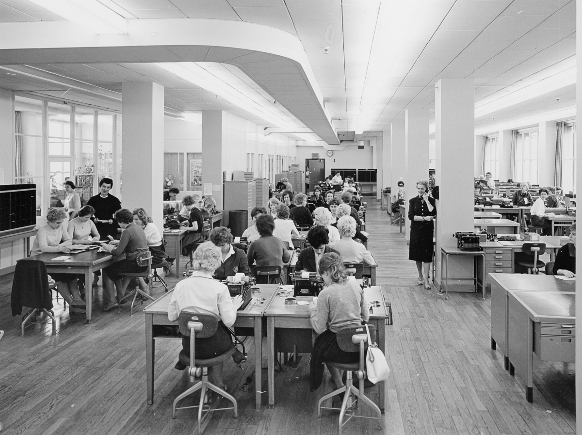 Stansning av hålkort. T.v. fönster åt gården och t.h. åt Mäster Samuelsgatan.