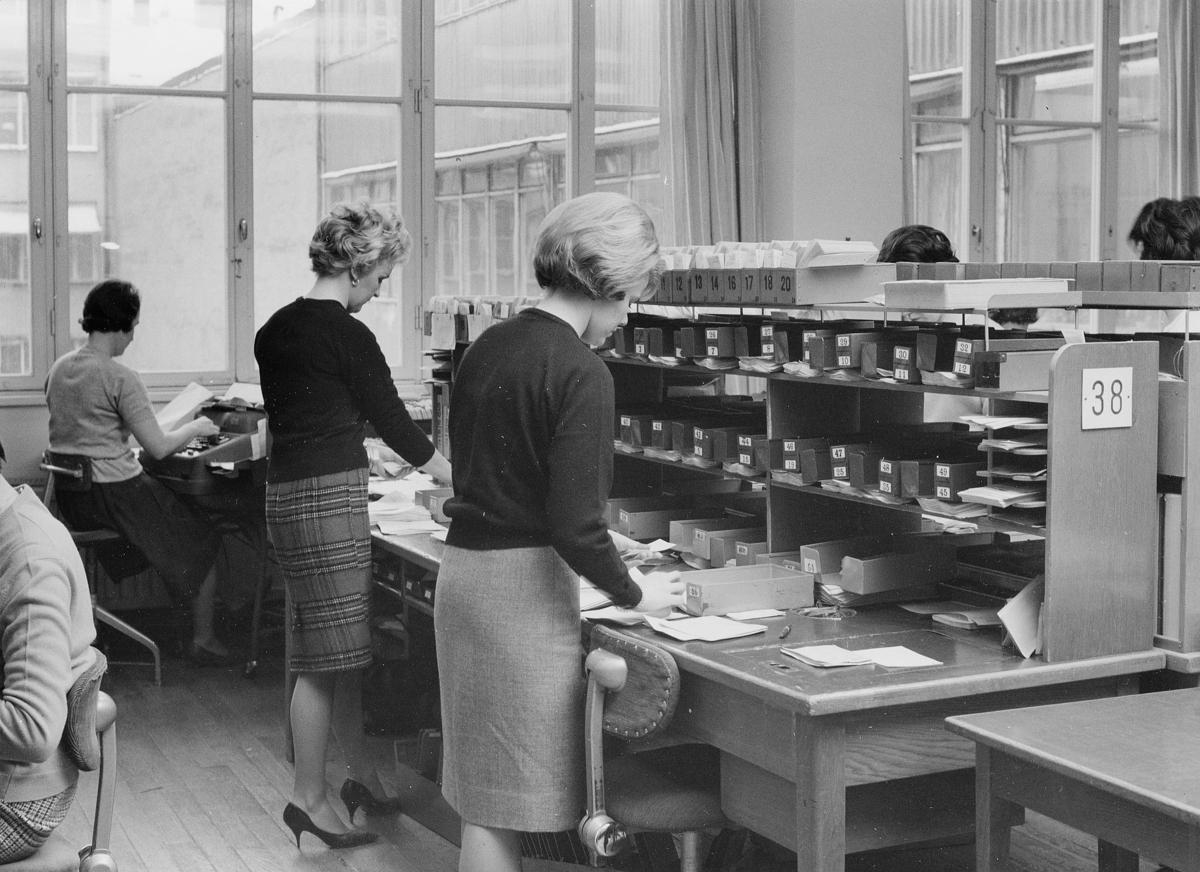 Bokföringsbord 38. De här damerna sköter konton vars nummer slutar