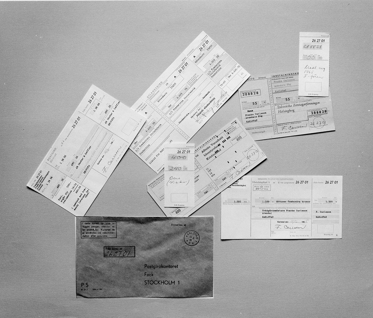 Postgirokuvertet från Firma F. Carlsson innehåller fem