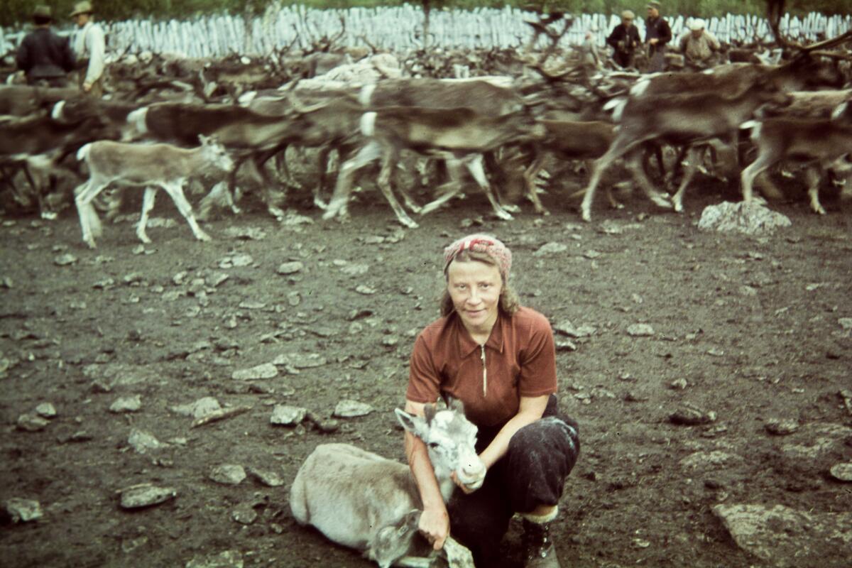 Flicka med renkalv.