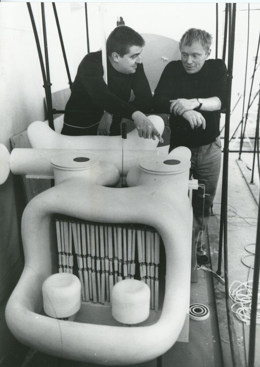 Skulptur, Jätteskrivmaskin. Ingår i utställningen "En tidnings ansikte", i anslutning till Dagens Nyheters 100-års jubileum.