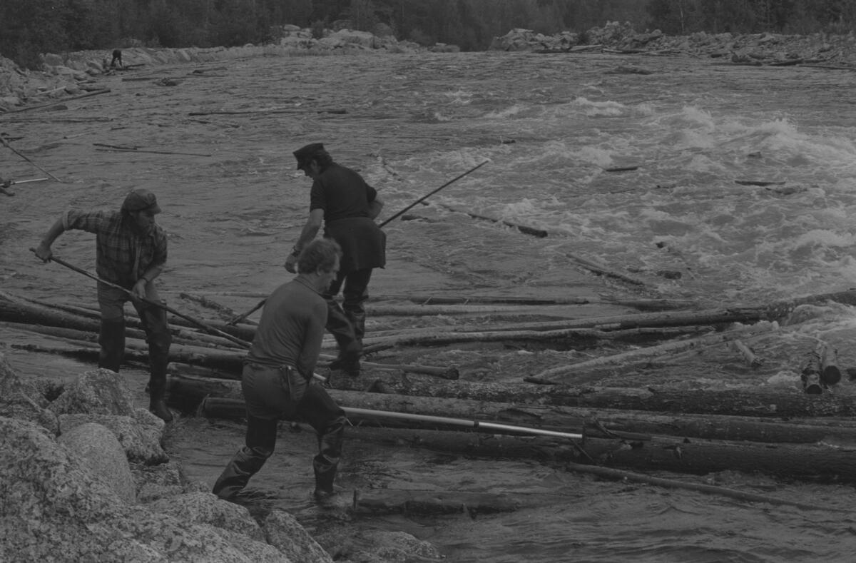 Titel: Nedströms Ramsele kraftverk. Rumpan, landrensning. Bengt Almroth, Mats Näsström, Harry Eneröd, Bernard Isaksson och Ulf Nilsson.