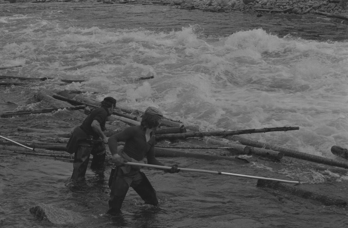 Nedströms Ramsele kraftverk. Rumpan, landrensning. Bengt Almroth, Mats Näsström, Harry Eneröd, Bernard Isaksson och Ulf Nilsson.