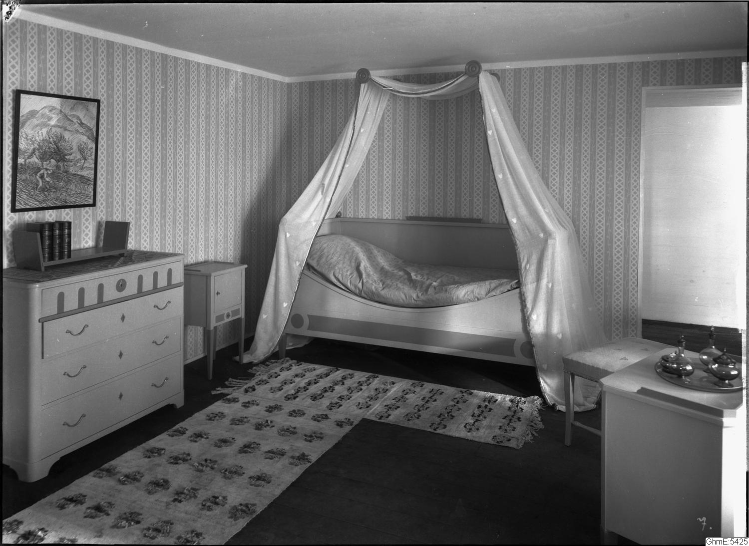 Jubileumsutställningen 1923. Konstindustri II. Nr 7.Sovrum, sängkammare med sparlakansäng.