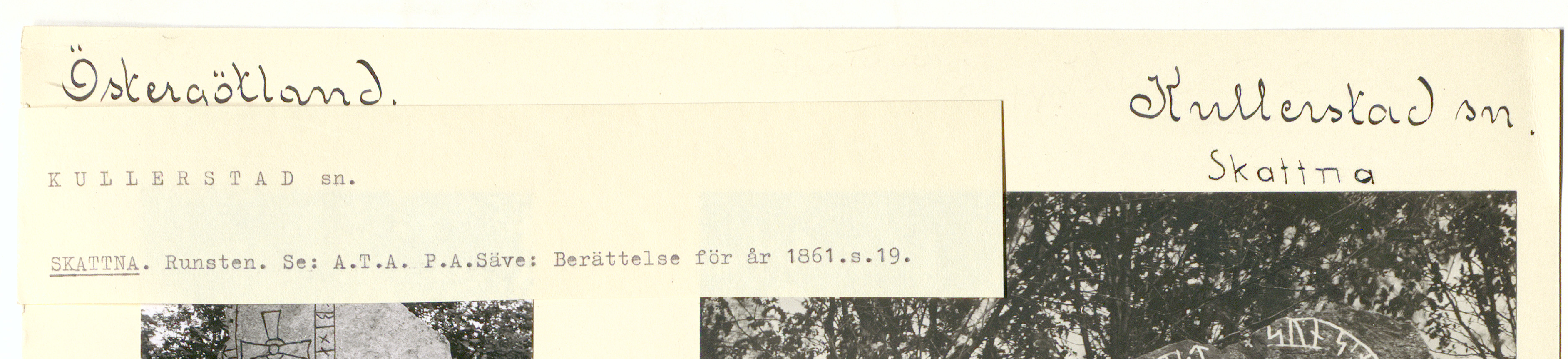 Beskrivning: Kullerstad sn, Skattna. Runsten. Se: A.T.A. P.A. Säve: Berättelse för år 1861, s.19.
