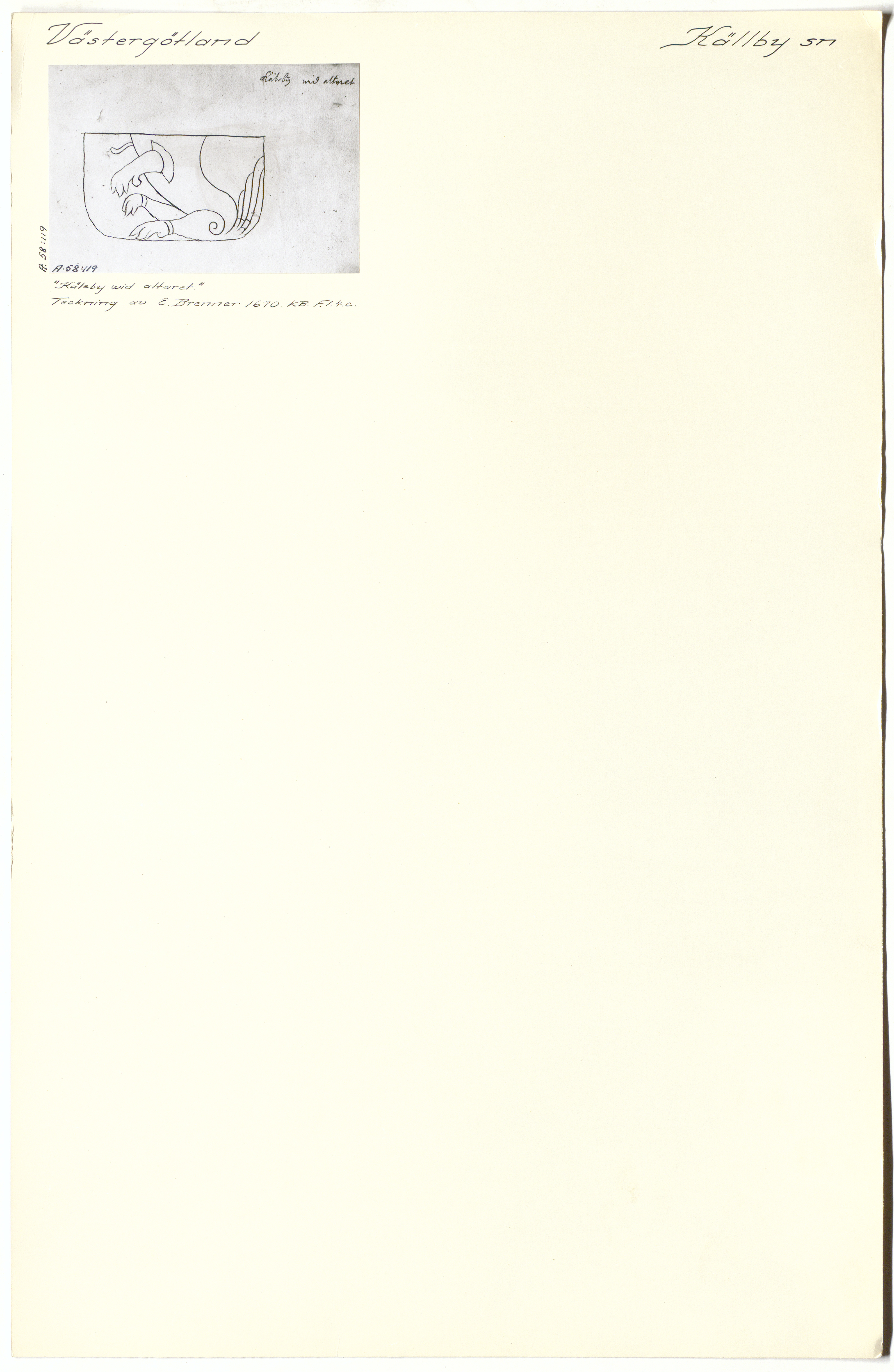 Beskrivning: Bild 1: Vg KBFl4c. Upphov: Elias Brenner (1670). Bildtext: "Käleby wid altaret". Teckning av Elias Brenner 1670, K.B. Fl 4c. Obs! Preliminärt nyskapat signum.