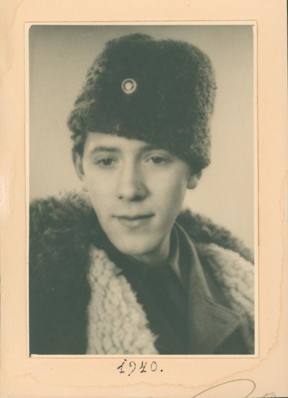 Porträtt av Eric Tanner iklädd Svenska frivilligkårens vinteruniform. På huvudet har han en pälsmössa med det finska nationalitetsmärket på. Porträttet är ramat i en mönstrad ram av gulmetall. På fotografiets baksida står: "Erik Tanner 1940. Stupade den 25/8 41 kl. 4 vid Salla. Curt"