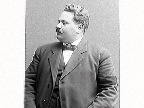 Herr Carlberg, Varberg. Han bär sorgbindel på armen till höger i bild.