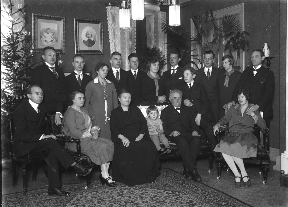 Stenhuggeriägare Eliasson, sannolikt med familj och släkt uppställda vid julgranen.
