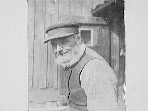 Man med skepparkrans klädd i väst, olle och vegamössa.
