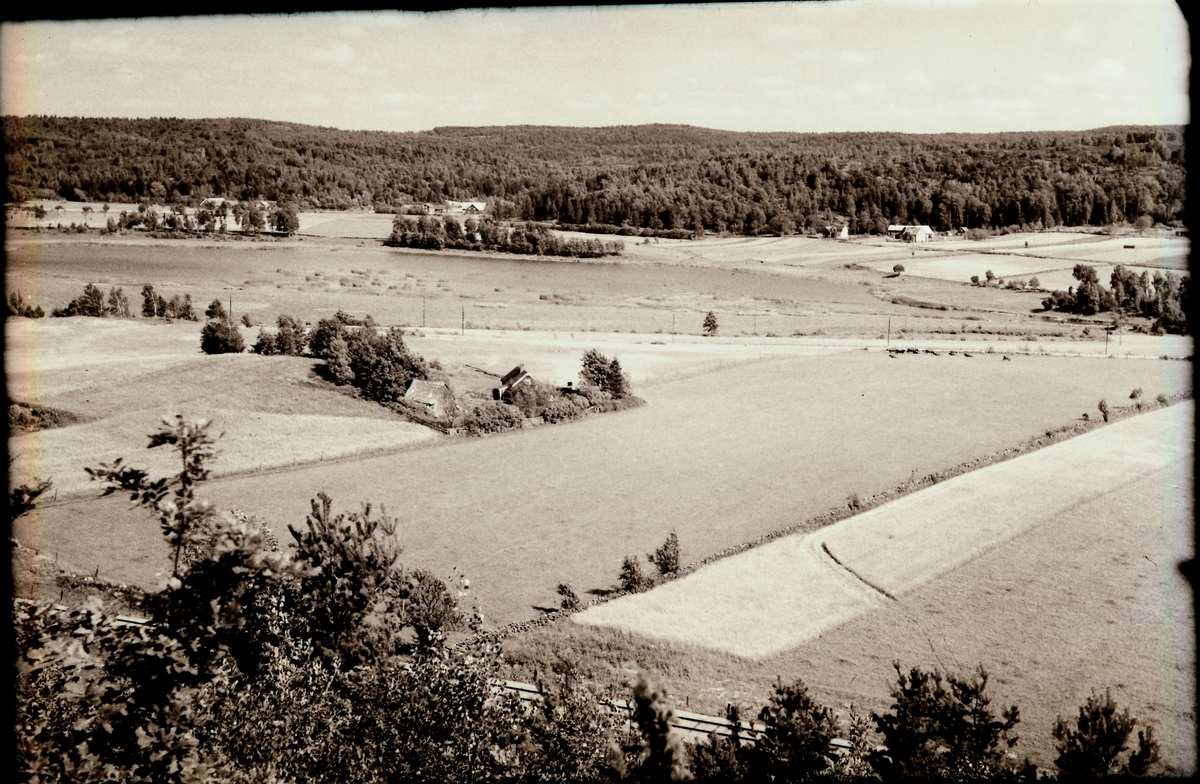 Vy över Hugalyckan i Veddige, gården i mitten av bilden.