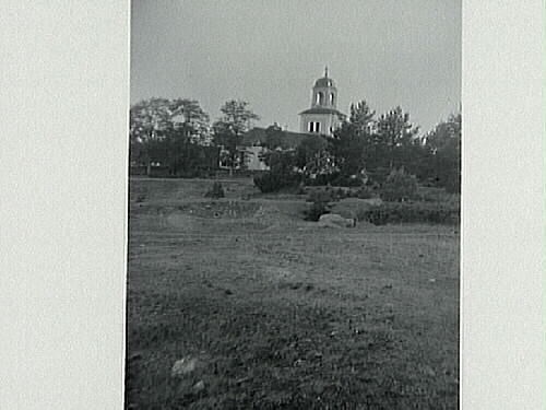 Okänd kyrka på okänd ort med terrassseringar framför.