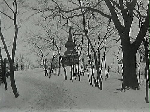 Snöbild. Okänd kyrkomiljö på okänd ort.