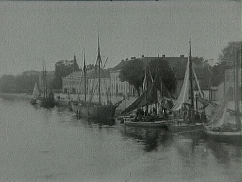 Halmstads hamn. Segelskutor ligger vid kajen.