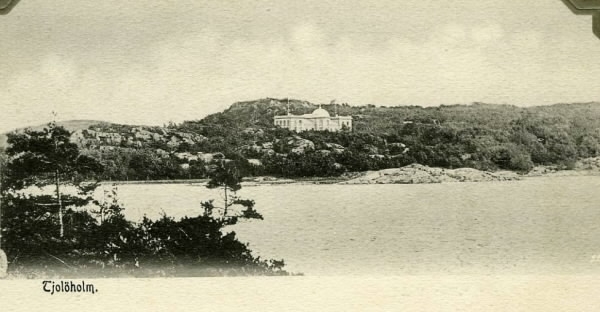Brevkort. Tjolöholms äldre slott sett från havssidan. Werner Santesson lät uppföra denna nyrenässansbyggnad 1867, som ersatte ett äldre gods på platsen.
