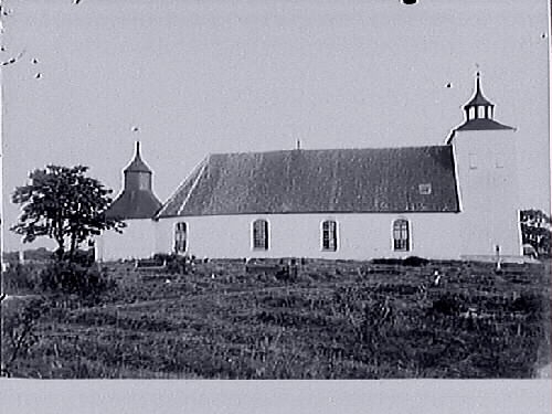 Onsala kyrka sedd från norrsidan. Utbyggnaden i öster är det Gathenhielmska gravkoret.