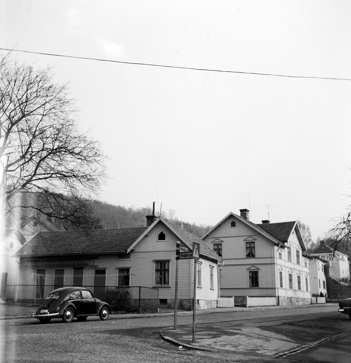 Gatukorsning i Huskvarna med vägskyltar mot Rogberga och Nässjö.