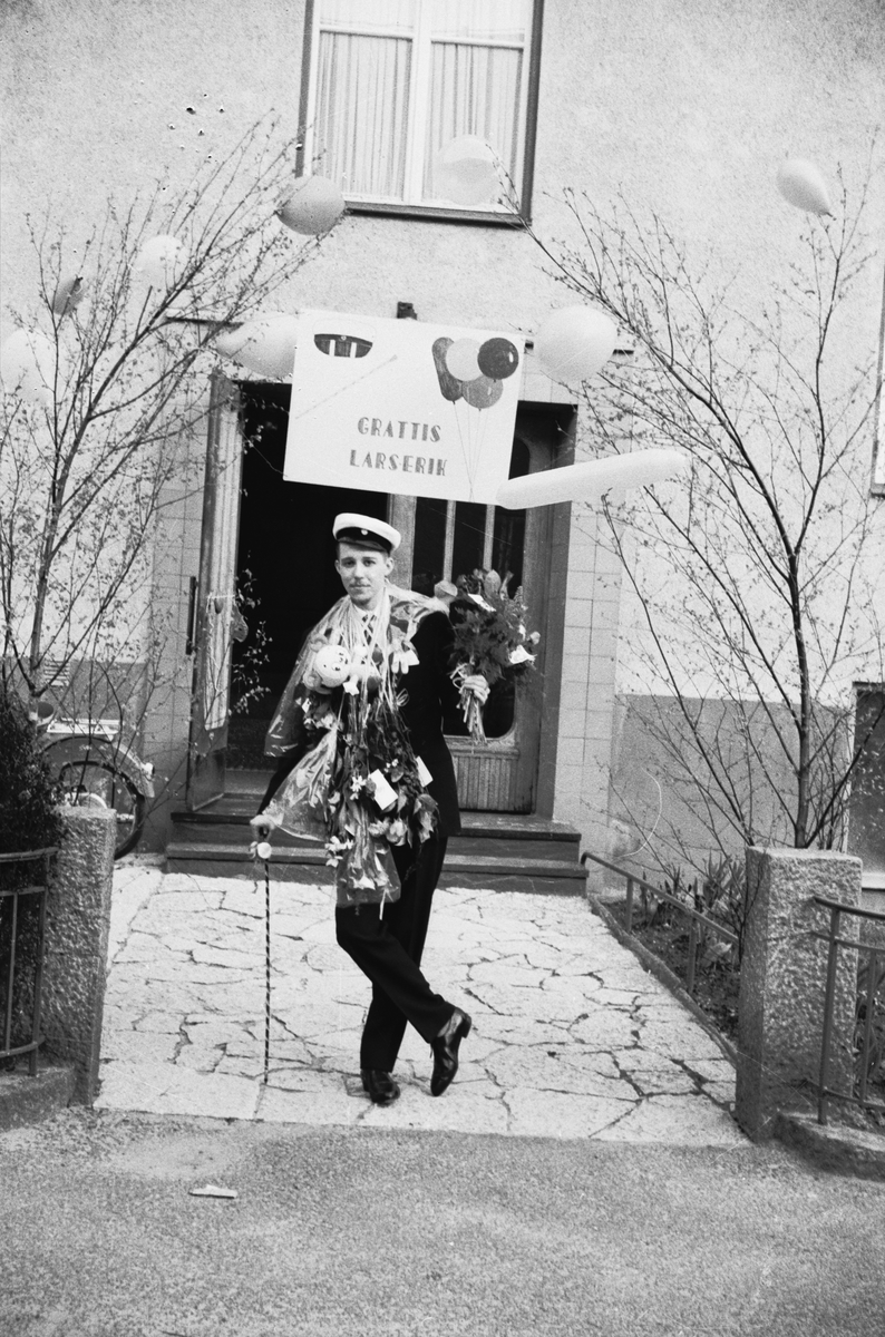 Lars-Erik Andersson har tagit studenten och står utanför sitt hem i Huskvarna.