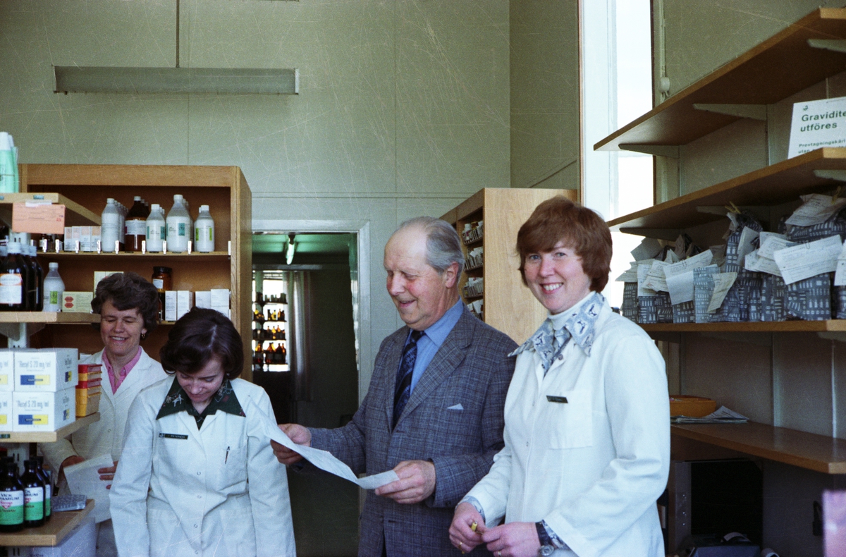Apoteket i Huskvarna. Från vänster står: Solveig Fogelkvist (1), Peterson (2), Löfgren (3) och Ekwall (4).