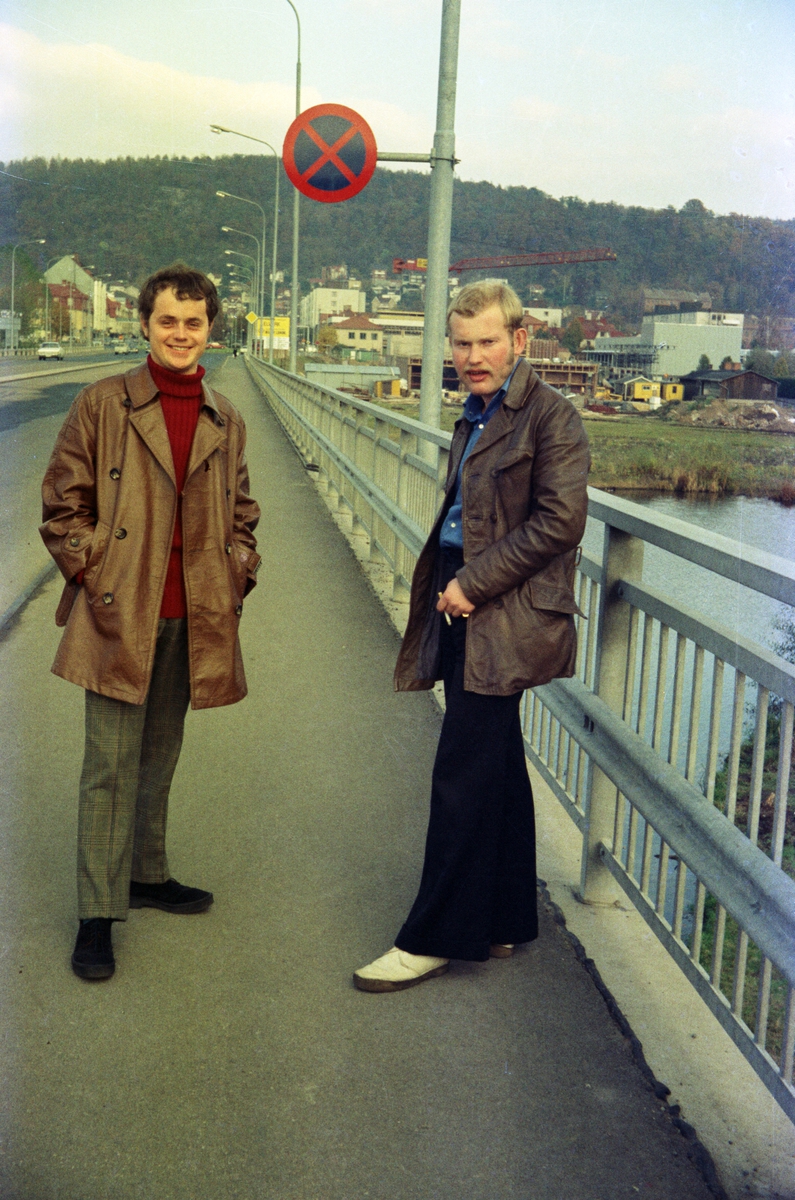 På Esplanadbron i Huskvarna står från vänster: Bosse Lindström "Pilten" (1) och Tom Andersson (2).